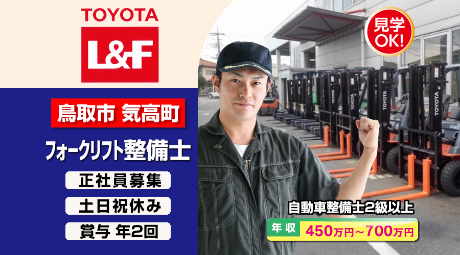 トヨタL&F岡山株式会社【トヨタL&F岡山】 自動車整備士・メカニック(鳥取市気高町)