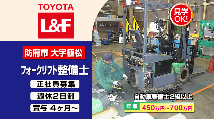 トヨタL&F山口株式会社【トヨタL&F山口】 自動車整備士・メカニック(山口県防府市大字植松)