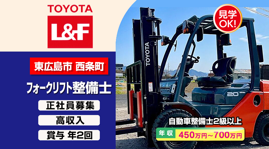トヨタL&F広島株式会社【トヨタL&F広島】 自動車整備士・メカニック(広島県東広島市西条町)