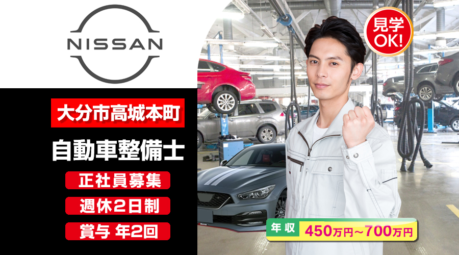 日産プリンス大分販売株式会社【日産プリンス大分】 自動車整備士・メカニック(大分市高城本町)