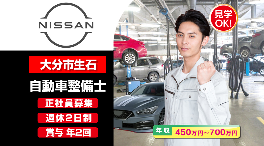日産プリンス大分販売株式会社【日産プリンス大分】 自動車整備士・メカニック(大分市生石)
