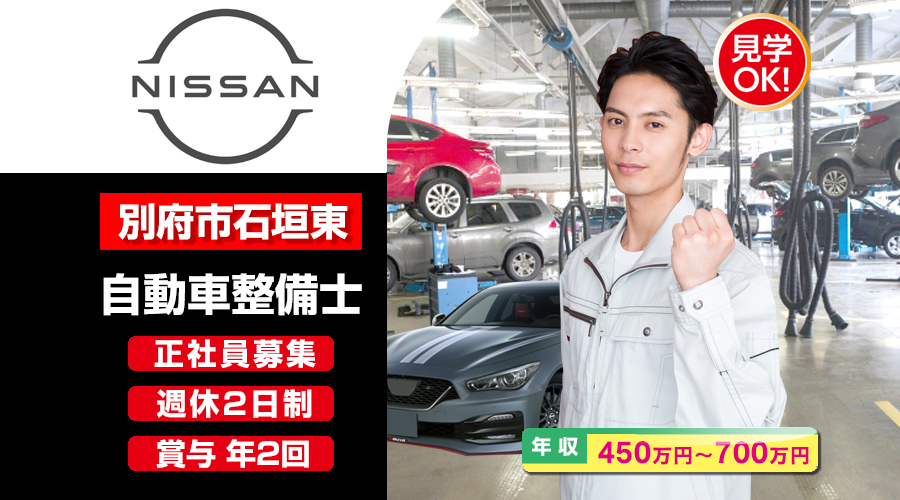 日産プリンス大分販売株式会社【日産プリンス大分】 自動車整備士・メカニック(別府市石垣東)