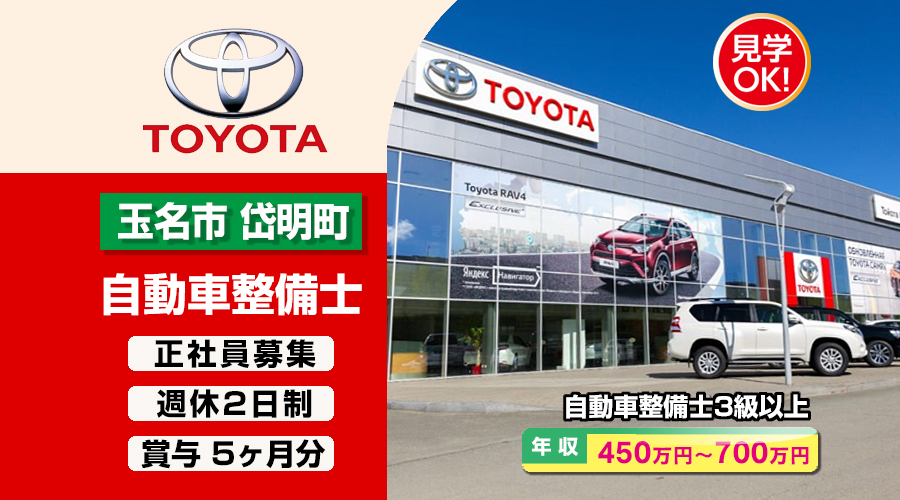 熊本トヨタ自動車株式会社【熊本トヨタ】 自動車整備士・メカニック(玉名市岱明町庄山)