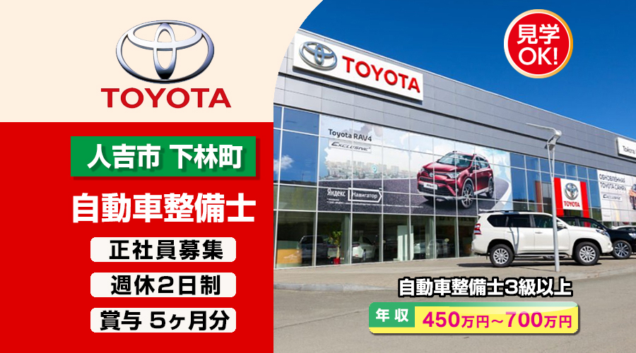 熊本トヨタ自動車株式会社【熊本トヨタ】 自動車整備士・メカニック(人吉市下林町)