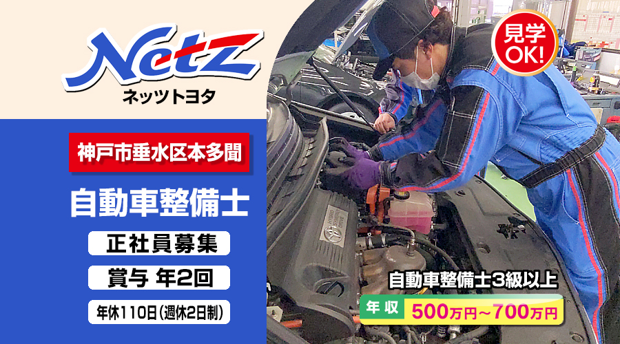 ネッツトヨタ兵庫株式会社【ネッツトヨタ兵庫】 自動車整備士・メカニック(神戸市垂水区本多聞)