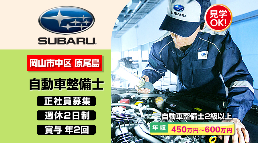 岡山スバル株式会社【岡山スバル】 自動車整備士・メカニック(岡山市中区原尾島)