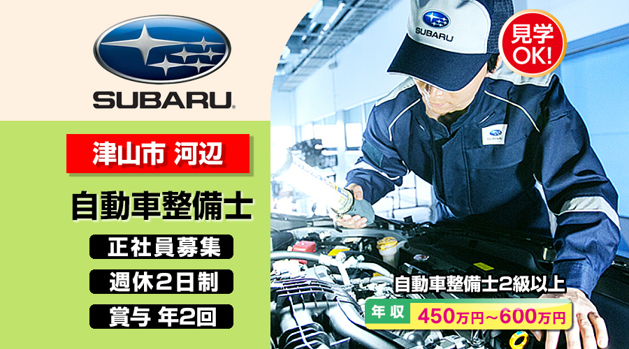 岡山スバル株式会社【岡山スバル】自動車整備士・メカニック(岡山県津山市河辺)