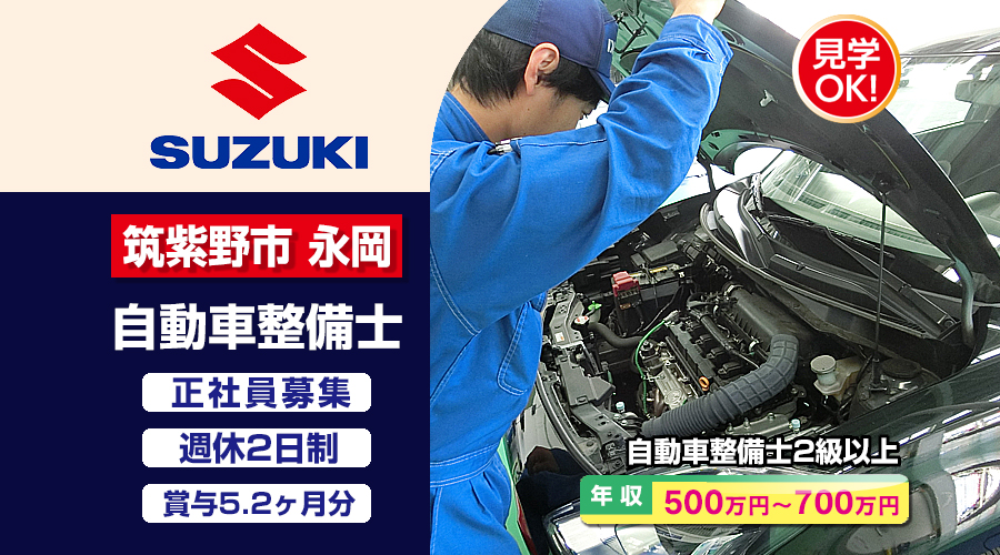株式会社スズキ自販福岡【スズキ自販福岡】 自動車整備士・メカニック(筑紫野市永岡)