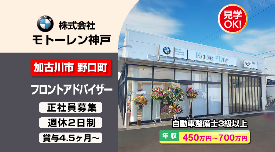 株式会社モトーレン神戸【モトーレン神戸】 フロントアドバイザー(加古川市野口町)