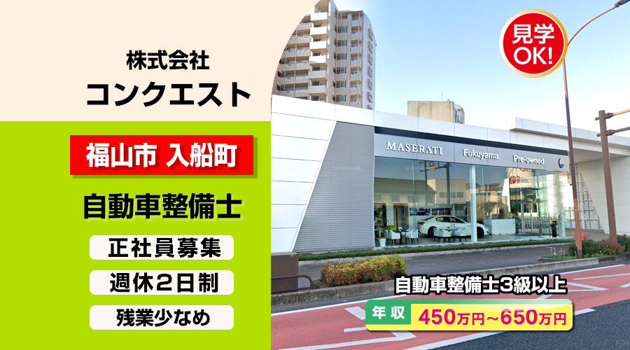 株式会社コンクエスト(マセラッティ福山)【コンクエスト】 自動車整備士・メカニック(福山市入船町)
