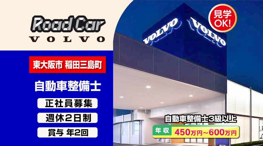 株式会社ロードカー(ボルボ・カー東大阪店)【ロードカー】 自動車整備士・メカニック(東大阪市稲田三島町)