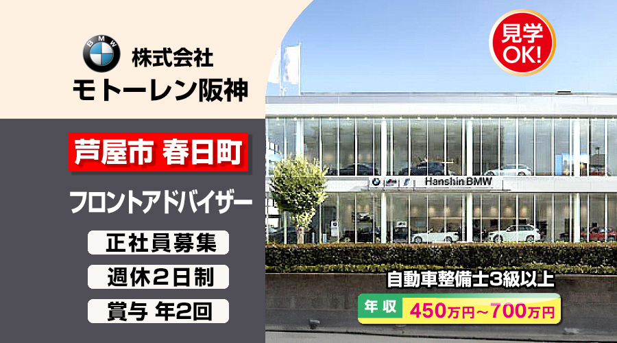 株式会社モトーレン阪神(Hanshin BMW 芦屋支店)【モトーレン阪神】 フロントアドバイザー(芦屋市春日町)