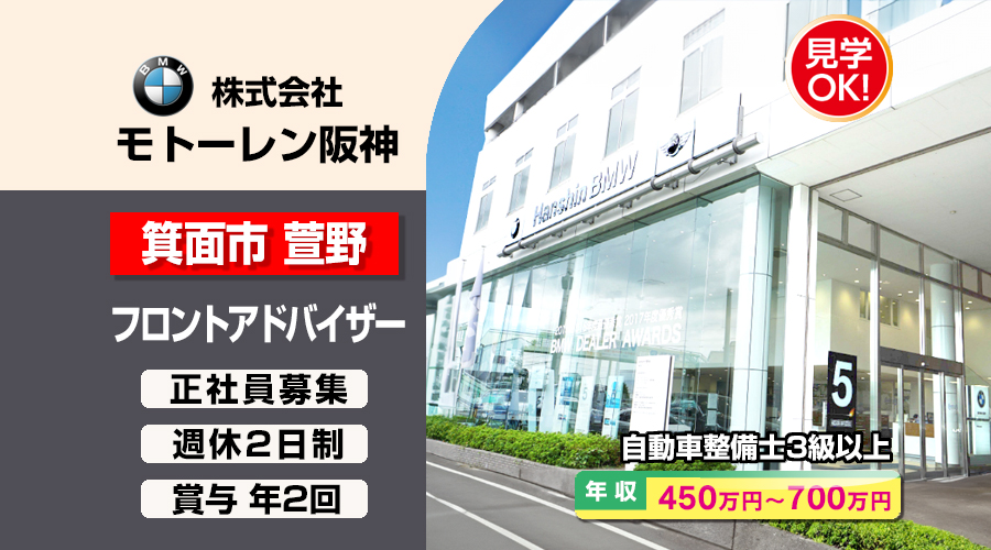 株式会社モトーレン阪神(Hanshin BMW 箕面支店)【モトーレン阪神】 フロントアドバイザー(箕面市萱野)
