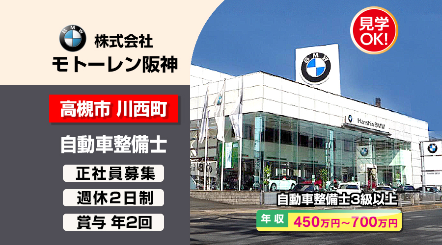 株式会社モトーレン阪神(Hanshin BMW 高槻支店)【モトーレン阪神】 自動車整備士・メカニック(高槻市川西町)