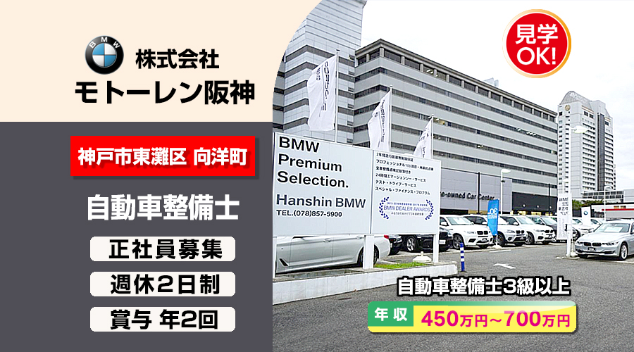 株式会社モトーレン阪神(BMW Premium Selection 六甲アイランド)【モトーレン阪神】 自動車整備士・メカニック(神戸市東灘区向洋町)