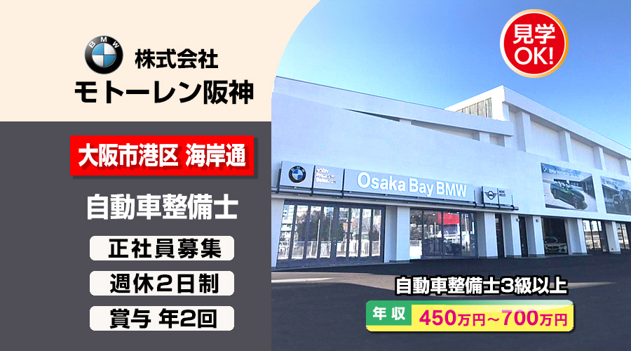 株式会社モトーレン阪神(BMW Premium Selection / MINI NEXT 大阪ベイ)【モトーレン阪神】 自動車整備士・メカニック(大阪市港区海岸通)