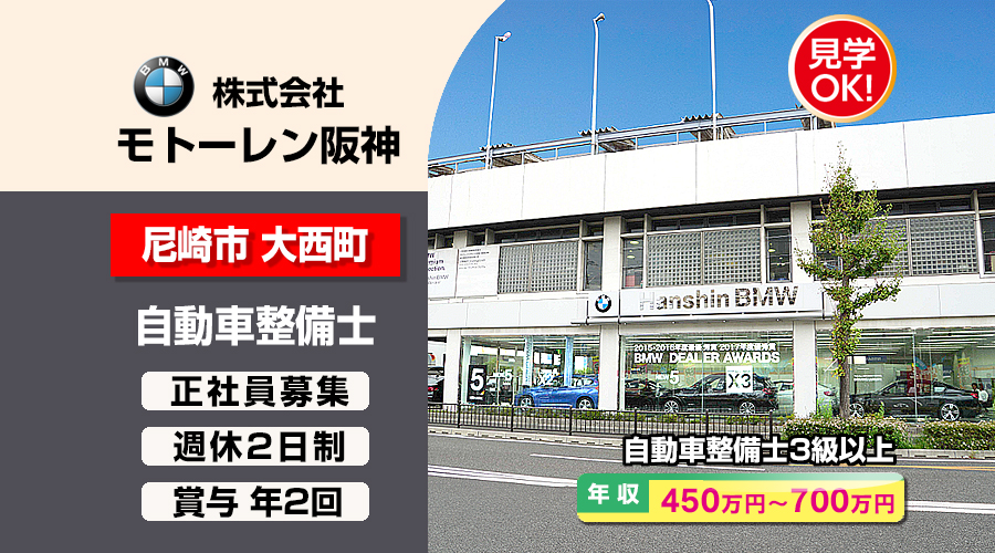 株式会社モトーレン阪神(BMW Premium Selection 尼崎)【モトーレン阪神】 自動車整備士・メカニック(尼崎市大西町)