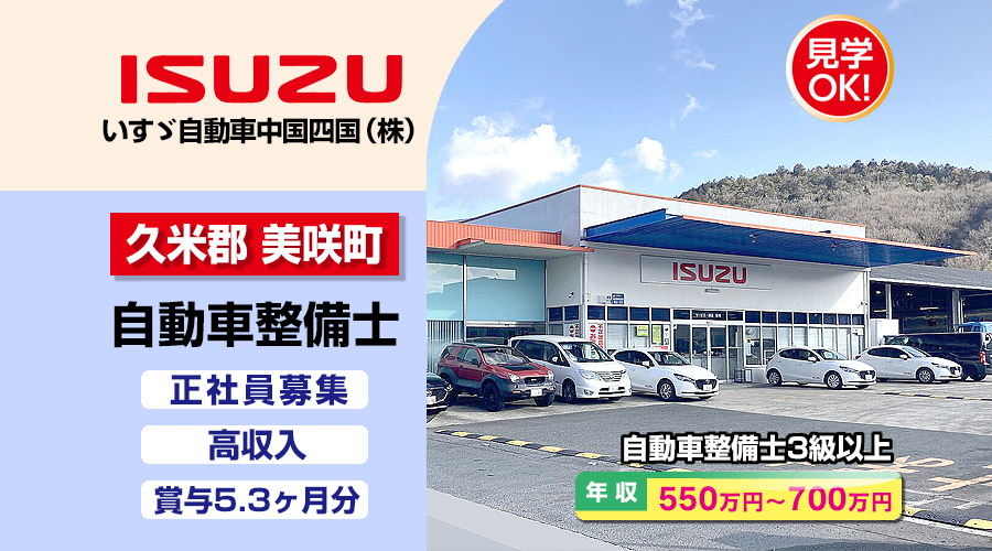 いすゞ自動車中国四国株式会社(津山支店・津山サービスセンター)【いすゞ自動車中国四国】 自動車整備士・メカニック(久米郡美咲町)
