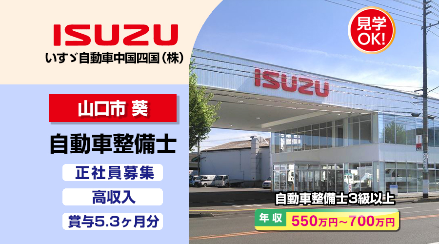 いすゞ自動車中国四国株式会社(山口支店・山口サービスセンター)【いすゞ自動車中国四国】 自動車整備士・メカニック(山口市葵)