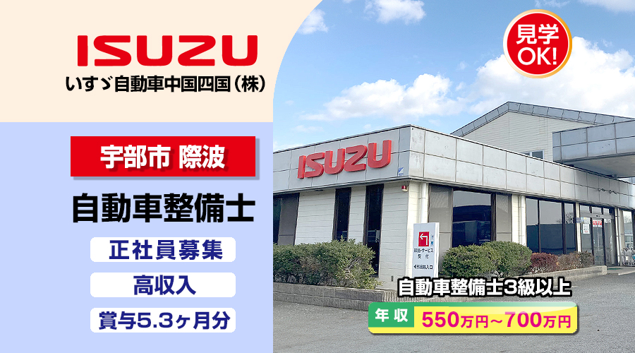 いすゞ自動車中国四国株式会社(宇部支店・宇部サービスセンター)【いすゞ自動車中国四国】 自動車整備士・メカニック(宇部市際波)
