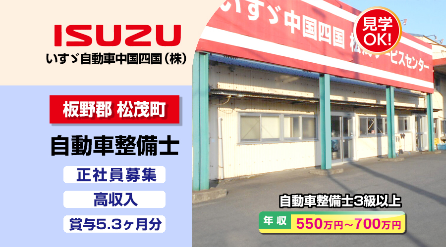 いすゞ自動車中国四国株式会社(松茂サービスセンター)【いすゞ自動車中国四国】 自動車整備士・メカニック(板野郡松茂町)