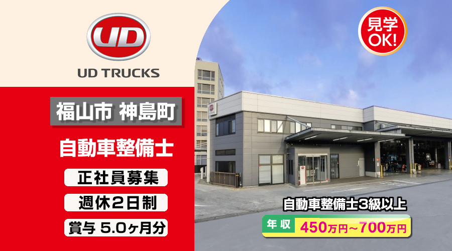 UDトラックス株式会社 (福山カスタマーセンター)【UDトラックス】 自動車整備士・メカニック(福山市神島町)