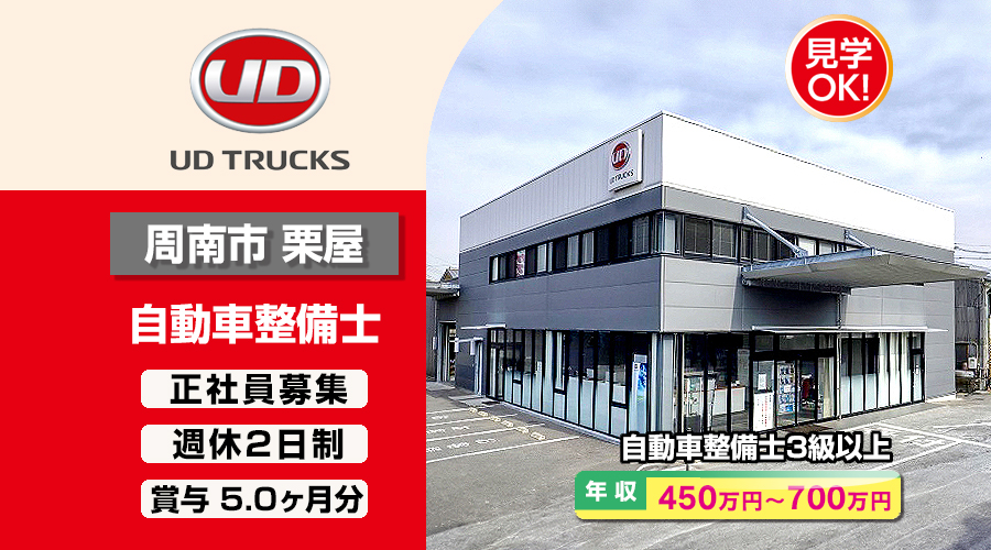 UDトラックス株式会社 (周南カスタマーセンター)【UDトラックス】 自動車整備士・メカニック(周南市栗屋)