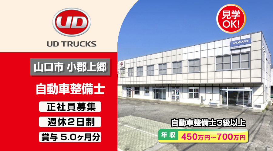 UDトラックス株式会社 (山口カスタマーセンター)【UDトラックス】 自動車整備士・メカニック(山口市小郡上郷)