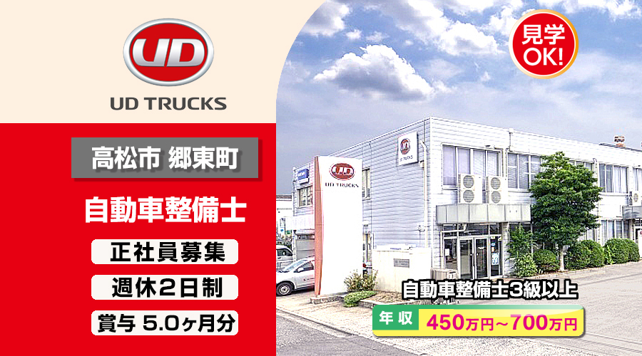 UDトラックス株式会社 (香川カスタマーセンター)【UDトラックス】 自動車整備士・メカニック(高松市郷東町)