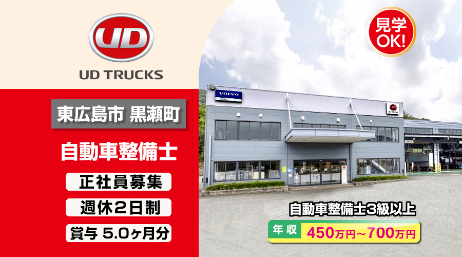 UDトラックス株式会社 (広島東呉カスタマーセンター)【UDトラックス】 自動車整備士・メカニック(東広島市黒瀬町)