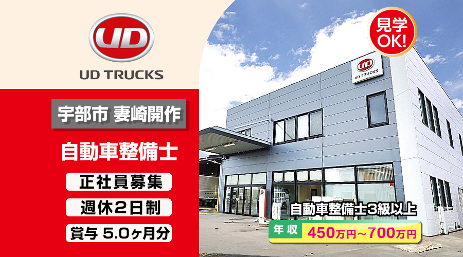 UDトラックス株式会社 (宇部カスタマーセンター)【UDトラックス】 自動車整備士・メカニック(宇部市妻崎開作)