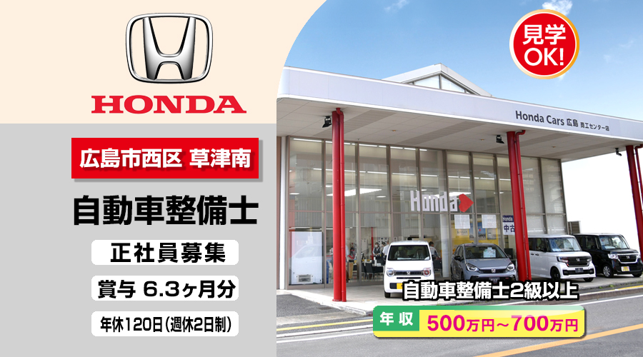 株式会社ホンダモビリティ中四国 (ホンダカーズ広島 商工センター店)【ホンダモビリティ中四国】 自動車整備士・メカニック(広島市西区草津南)