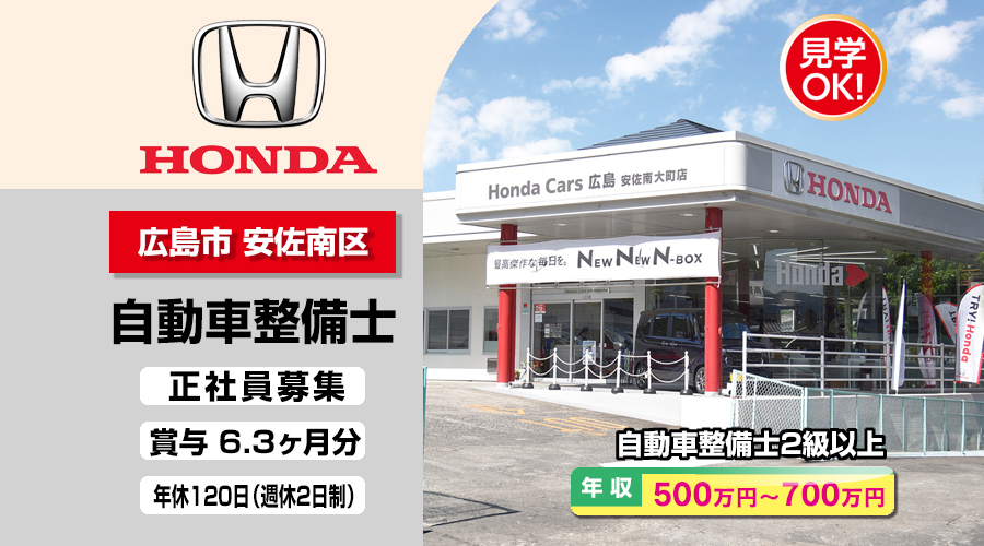 株式会社ホンダモビリティ中四国 (ホンダカーズ広島 安佐南大町店)【ホンダモビリティ中四国】 自動車整備士・メカニック(広島市安佐南区大町東)