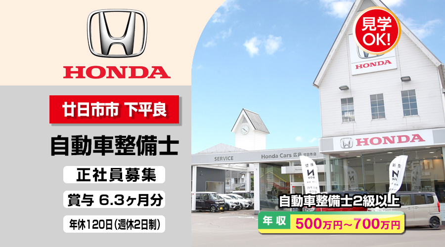 株式会社ホンダモビリティ中四国 (ホンダカーズ広島 廿日市店)【ホンダモビリティ中四国】 自動車整備士・メカニック(廿日市市下平良)