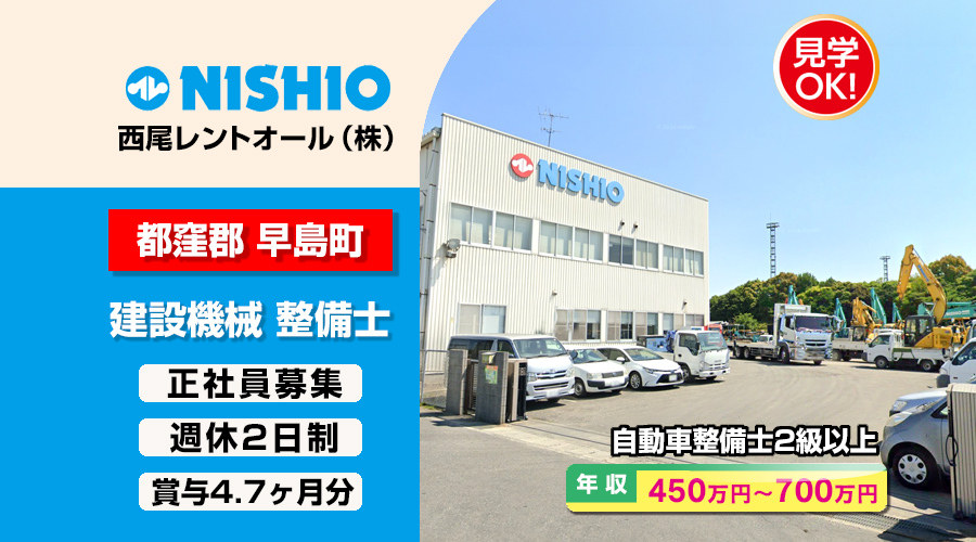 西尾レントオール株式会社 (岡山営業所)【西尾レントオール】 建設機械 整備士(都窪郡早島町)