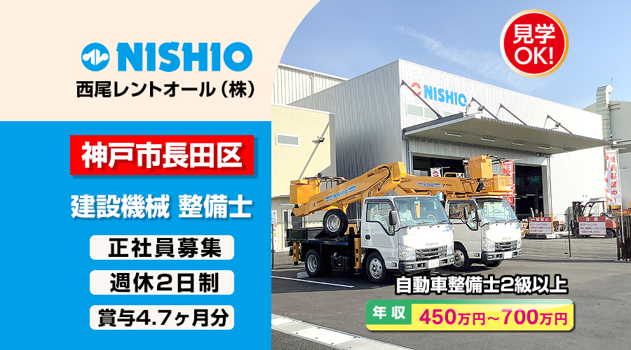 西尾レントオール株式会社 (神戸中央営業所)【西尾レントオール】 建設機械 整備士(神戸市長田区)