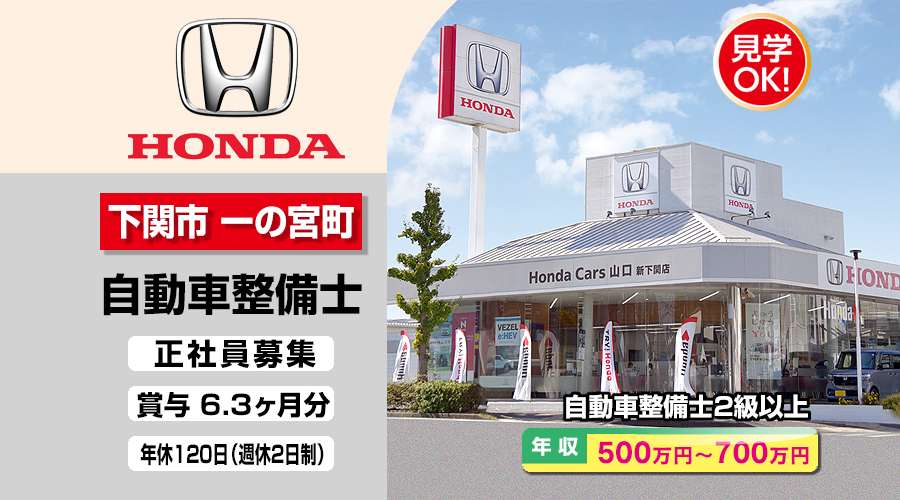 株式会社ホンダモビリティ中四国 (ホンダカーズ山口 新下関店)【ホンダモビリティ中四国】 自動車整備士・メカニック(下関市一の宮町)