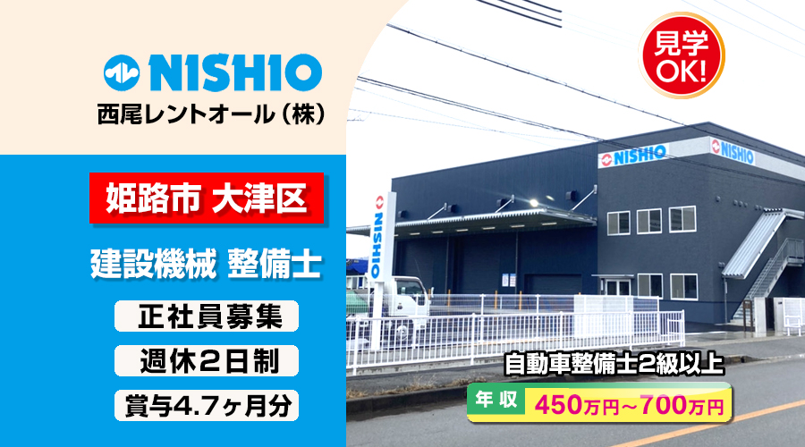 西尾レントオール株式会社 (姫路営業所)【西尾レントオール】 建設機械 整備士(姫路市大津区)