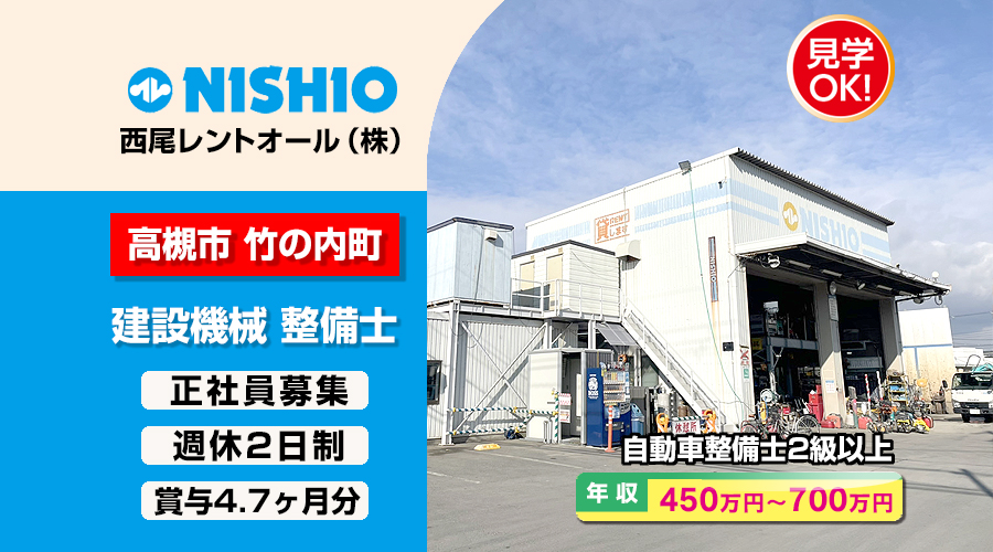 西尾レントオール株式会社 (高槻営業所)【西尾レントオール】 建設機械 整備士(高槻市竹の内町)