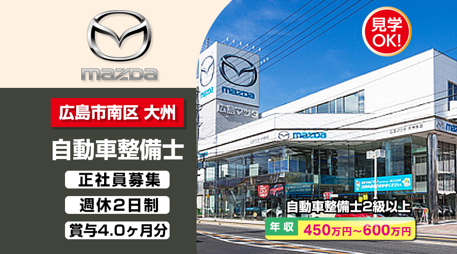 株式会社 広島マツダ (大州本店)【広島マツダ】 自動車整備士・メカニック(広島市南区大州)