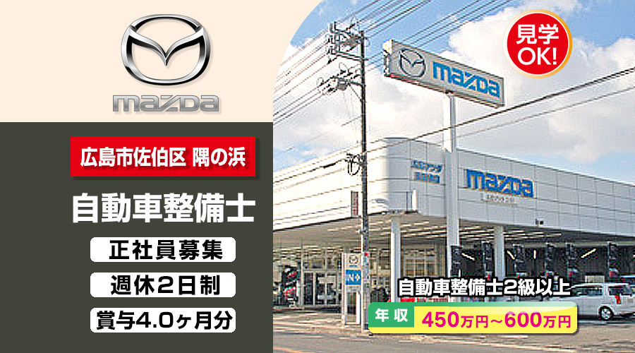 株式会社 広島マツダ (五日市店)【広島マツダ】 自動車整備士・メカニック(広島市佐伯区隅の浜)