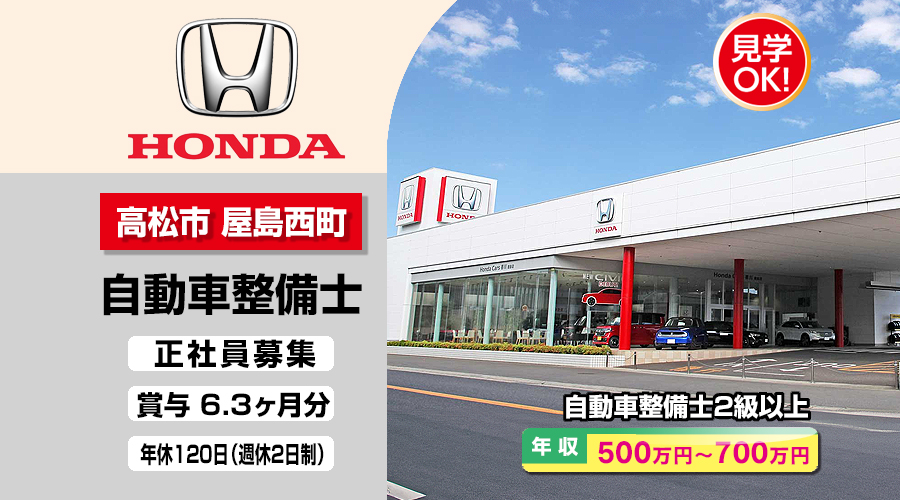 株式会社ホンダモビリティ中四国 (ホンダカーズ香川 屋島店)【ホンダモビリティ中四国】 自動車整備士・メカニック(高松市屋島西町)