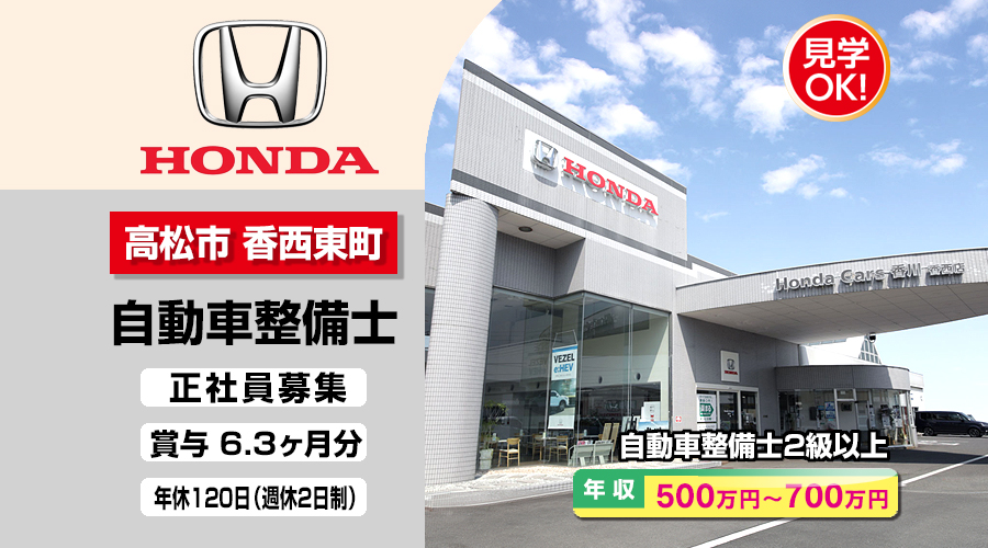 株式会社ホンダモビリティ中四国 (ホンダカーズ香川 香西店)【ホンダモビリティ中四国】 自動車整備士・メカニック(高松市香西東町)