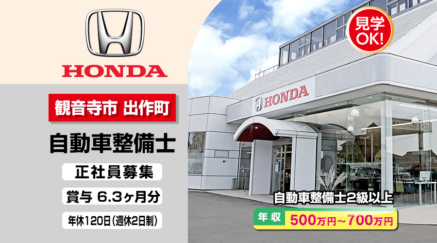 株式会社ホンダモビリティ中四国 (ホンダカーズ香川 観音寺出作店)【ホンダモビリティ中四国】 自動車整備士・メカニック(観音寺市出作町)