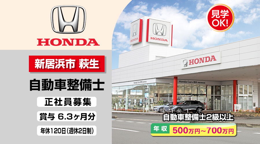 株式会社ホンダモビリティ中四国 (ホンダカーズ愛媛 新居浜萩生店)【ホンダモビリティ中四国】 自動車整備士・メカニック(新居浜市萩生)