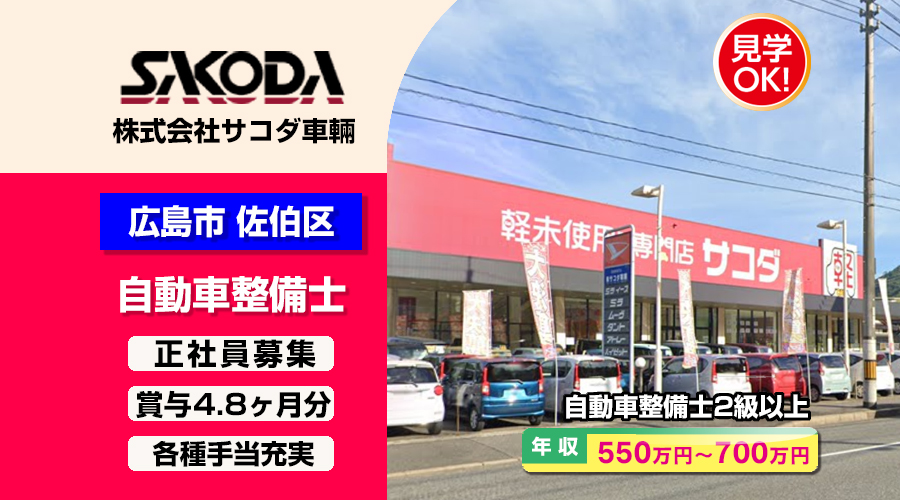 株式会社サコダ車輛 (五日市店)【サコダ車輛】 自動車整備士・メカニック(広島市佐伯区五日市町)