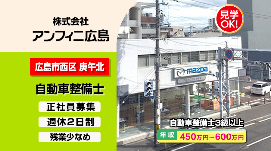 株式会社アンフィニ広島 (庚午店)【アンフィニ広島】 自動車整備士・メカニック(広島市西区庚午北)