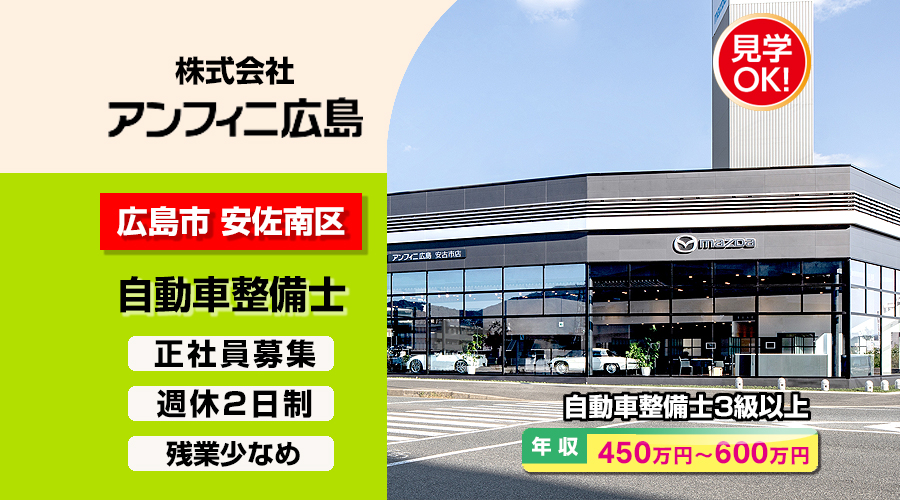 株式会社アンフィニ広島 (安古市店)【アンフィニ広島】 自動車整備士・メカニック(広島市安佐南区中須)