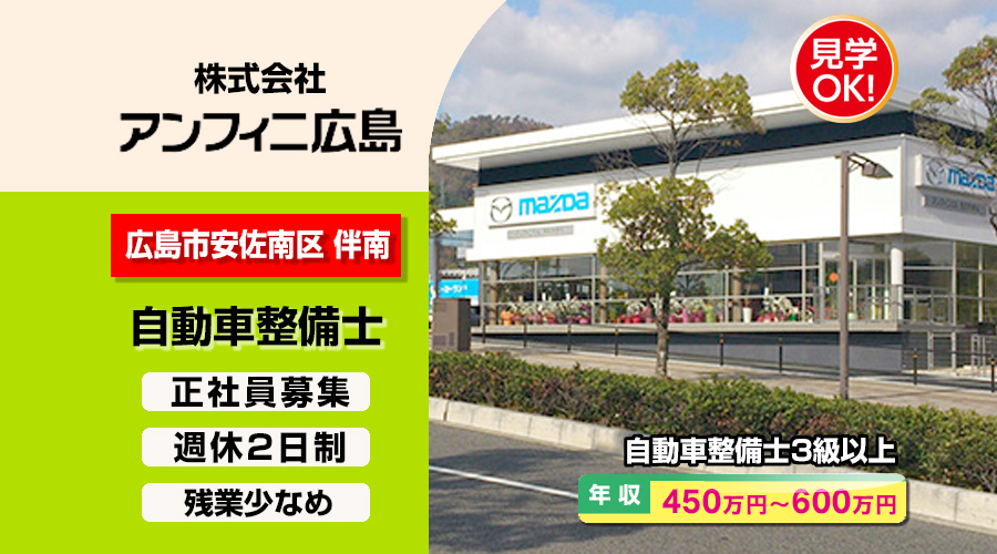 株式会社アンフィニ広島 (西風新都店)【アンフィニ広島】 自動車整備士・メカニック(広島市安佐南区伴南)