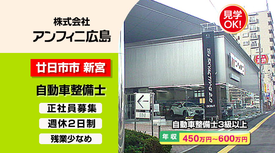 株式会社アンフィニ広島 (廿日市店)【アンフィニ広島】 自動車整備士・メカニック(廿日市市新宮)